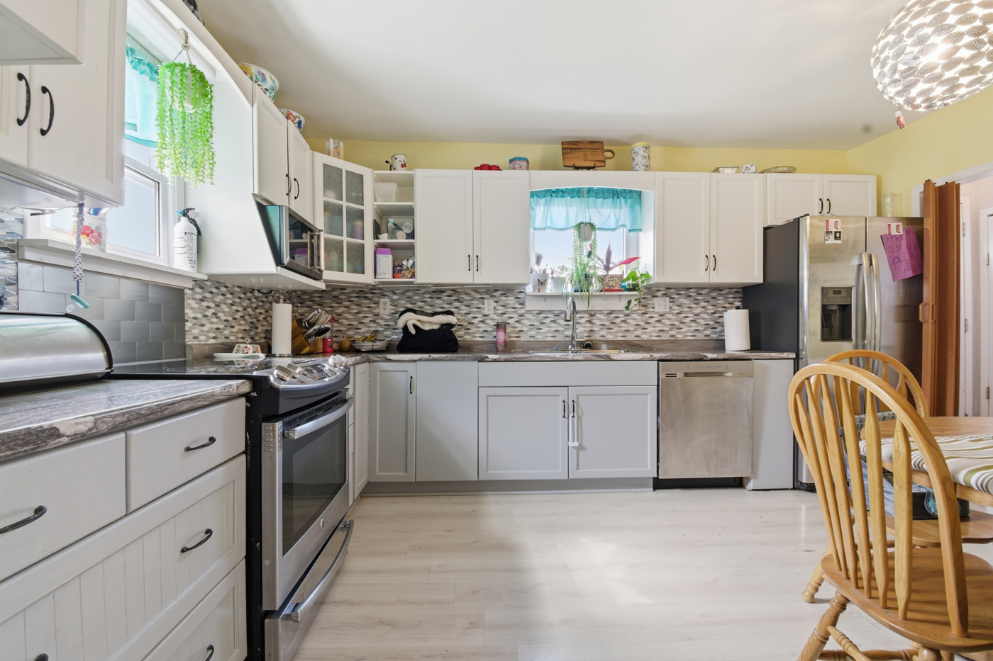Welcome to this charming 3 bedroom, 1-1/2 storey home! You'll love the spacious eat-in kitchen, perfect for family gatherings. This home has seen many significant updates, all completed in 2015, including the roof, flooring, kitchen, and bathroom, offering you peace of mind. An unfinished basement is waiting for your personal touches to make it your own special place. Outside, enjoy the covered front porch and the expansive, fully fenced large lot, providing a great space for kids, pets, or gardening. Parking is easy with the double asphalt driveway. This move-in ready home is a fantastic find!